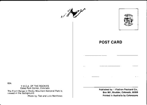 The front Range in Rocky Mountain national Park is viewed in the background - Photo by Ted and Lois Matthews - pub by Flatiron Postcard Company