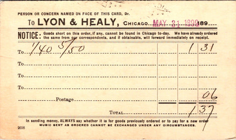 mailed to Archie McCoy in 1899 from Chicago with a flag cancellation with a 5 inside the wavy lines