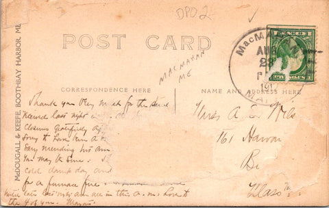 • This Real Photo postcard card shows a few buildings above the rocky shoreline.  Am listing it under MacMahan because of the postmark - but am not 100% sure it is from there.