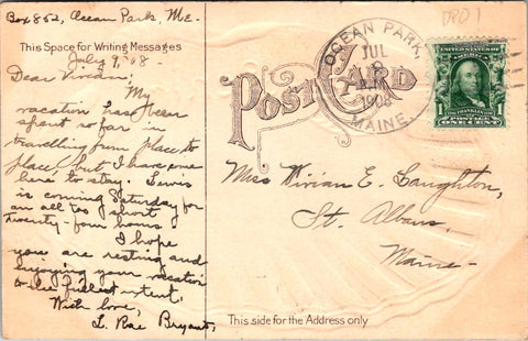 ME, OCEAN PARK - Souvenir from with Large shell - @1908 postcard - w04511