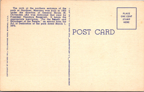 MT, YELLOWSTONE - Northern Entrance Arch, Yellowstone Park postcard - WY0002