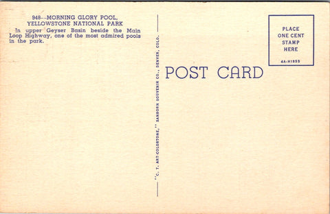 • This is one of many different Yellowstone postcards that we have up for sale at this time.  If your collection field is Yellowstone, know that if you choose to purchase more than 1 item, that we will combine shipment for any number of cards under our flat $2 s/h fee.   Only available when all are paid for with a single payment........so ask for a combined invoice BEFORE you actually pay.