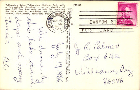 • mailed 1966 Yellowstone National Park, Wyo with a clear Canyon Sta killer strike
