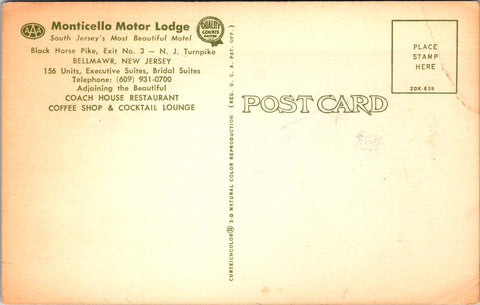 NJ, BELLMAWR - Monticello Motor Lodge, restaurant, Lounge postcard - 405016