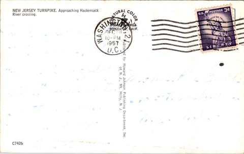 NJ, HACKENSACK  - NJ Turnpike approaching river crossing - 1957 postcard - DG0270