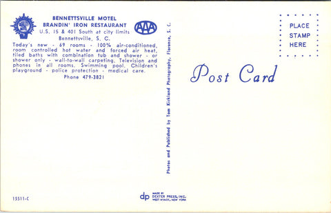 SC, BENNETTSVILLE - Motel and Brandin' Iron Restaurant postcard - B05430