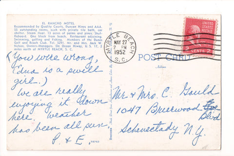 SC, MYRTLE BEACH - EL RANCHO Motel - 1952 postcard - DG0069