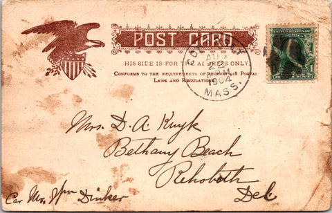 mailed 1904 from Cohasset with a fancy killer on the stamp