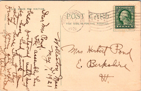 mailed 1921 with cancel postmark from Wollaston, Mass with a clear flag killer strike