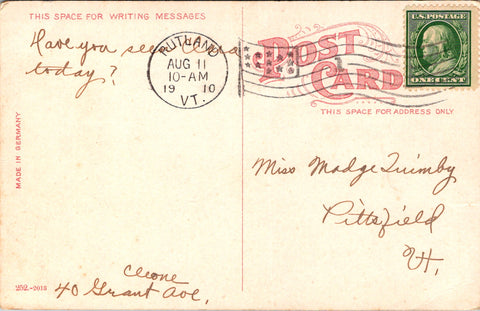 mailed 1910 from Rutland with a fairly clear flag cancel postmark