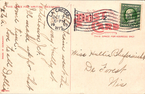 mailed 1910 - with a very clear postmark cancel from La Crosse - as well as a flag killer strike with a 2 in it