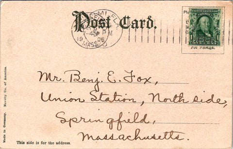 • to Mr Benj E Fox / Union Station, North side / Springfield, Massachusetts